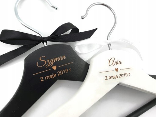 Белые и черные свадебные вешалки с именами жениха и невесты и датой свадьбы, комплект