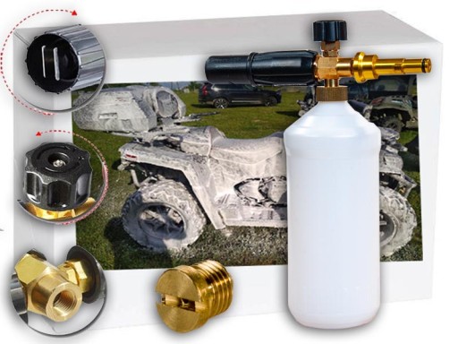Pianownica charakteryzuje się złączem Bayonet wykorzystywanym w myjkach z serii domowej . Pianownica idealnie współpracuje ze wszelkiego rodzaju środkami czyszczącymi takimi jak: aktywna piana, szampon z woskiem i bez wosku, hydrowosk i wiele innych. Pojemność pianownicy wynosi 1 litr. Półprzeźroczysty zbiornik na chemię daje możliwość wglądu i tym samym kontrolujemy zużycie chemii. Pianownica posiada regulacje kąta strumienia wody z pianą oraz ilość podawania chemii. Wytrzymały korpus gwarantuje długotrwałe i bezawaryjne użytkowanie. W przeciwieństwie do standardowych pianownic sprzedawanych na Internecie nasza pianownica posiada dyszę ze specjalnej stali odpornej na różnego rodzaju chemię. Dodatkowo tylko nasze pianownice posiadają wewnątrz zamontowaną filtrację wyłapującą wszelkiego rodzaju niebezpieczne ciała obce zabezpieczając tym samym elementy na które nakładamy chemię. Pianownica jest w pełni odporna na agresywną chemię.