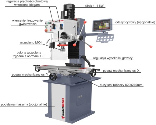 Wiertarko frezarka do metalu CORMAK ZX7045 230V lub 400V