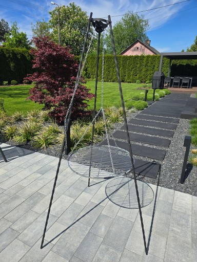 GRILL TRÓJNÓG OGRODOWY 190 CM +RUSZT 60 CHROMOWANY