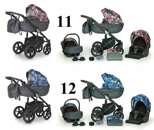 Wózek dostępny jest w jedenastu wersjach kolorystycznych, po zakupie prosimy o informację który kolor wózka Państwo wybrali (najlepiej w formularzu Allegro w okienku "wiadomość do sprzedającego" lub mailem zaraz po zakupie). Oznaczenia kolorów poniżej:
