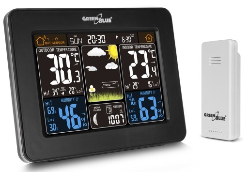 Marka GreenBlue oferuje wiele, różnorodnych domowych stacji pogodowych. Począwszy od prostych urządzeń z zegarem i higrometrem, po sterowane smartfonami, z kilkoma czujnikami zewnętrznymi, które dostarczają szczegóły na temat aktualnej i prognozowanej pogody.