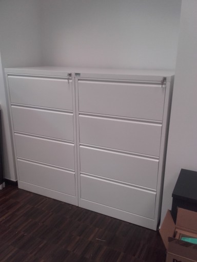 Przeznaczenie: szafy do przechowywania kart z historią pacjentów. 4-szufladowa szafka kartotekowa SZK 318 do kopert B5 poziomo. Korpus szafki, fronty szuflad wykonane z blachy stalowej gr. 1,0 mm, wieniec dolny z blachy ocynkowanej, pozostałe części szuflad z blachy gr. 0,8 mm. Szuflada przystosowana na dwa rzędy kartotek, na prowadnicach kulkowych o podwójnym wysuwie i z zabezpieczeniem przed wypadaniem. W każdej szufladzie po 2 przegrody ruchome typu „L”. Centralne ryglowanie szuflad. Maksymalny wymiar przechowywanego dokumentu 215 x 258 mm. Maksymalne obciążenie szuflady 50 kg.Dostępny w 16 kolorach.