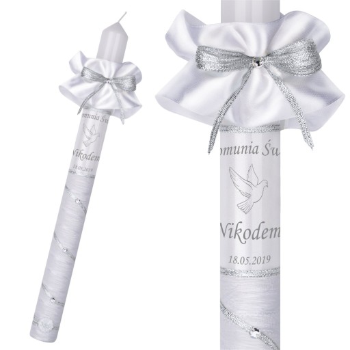 Свеча для Первого Причастия, серебро, принт на капельнице