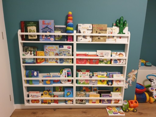 Listewki podtrzymujące książki znajdują się na wysokości 9-10 cm, możliwość zamontowania na innej wysokości w zależności od wielkości książeczek