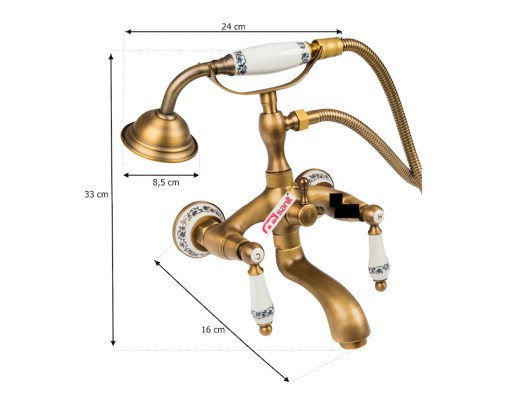 - wykonany w całości z mosiądzu, pokryty 4-krotną powłoką w kolorze stare złoto