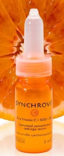 SYNCHROVIT C jest wyjątkowym serum liposomowym opartym na zsynchronizowanym działaniu molekuł nieenzymatycznych (witaminy C i cynku) z antyoksydantami eznymatycznymi SOD (dysmutaza ponadtlenkowa). Jest to pierwsze takie połączenie, które wykorzystuje najcenniejsze właściwości naturalnych składników, aby przeciwdziałać starzeniu się skóry dając jednocześnie wymierne i długotrwałe rezultaty.