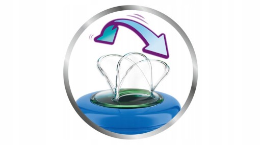 Jednoczęściowy silikonowy ustnik ułatwia picie: zawartość zaczyna wypływać po ściśnięciu ustnika.