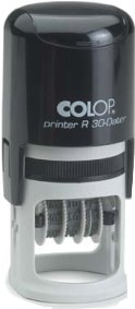 Przedmiotem jest datownik okrągły z płytką tekstową Colop R30 datownik