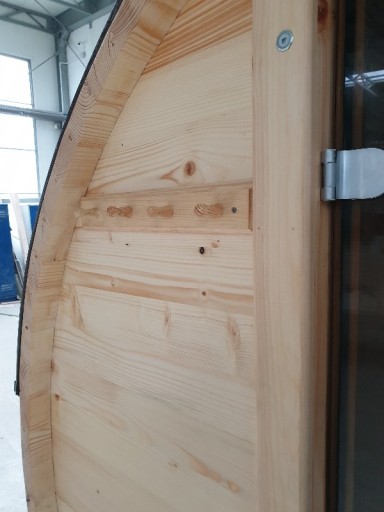 2.Posiadamy i stosujemy unikatowe autorskie połączenie belek ścian (chronione prawem RP) które zapobiega wnikaniu wody i wilgoci opadowej i zapobiega skutkom rozsychania drewna co jest bardzo istotne dla żywotności sauny. Ściany pionowe wykonane z drewna klejonego (połączenie wodoodporne).