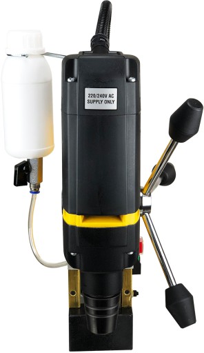 Wiertarka Magnetyczna MB 35 ze stopą magnetyczną posiada silnik o dużej mocy – 1050 W – dzięki czemu praca jest efektywna oraz stabilna. Dbałość o szczegóły, jakość wykończenia, jak i ergonomiczna budowa przy stosunkowo małej wadze – 11,6 kg – pozwalają na precyzyjną pracę. W przypadku wierteł trepanacyjnych możliwe jest wiercenie otworów o średnicy nawet do 35 mm. Dodatkowo dzięki zintegrowanemu systemowi chłodzenia chłodziwo wprowadzane jest bezpośrednio ze zbiornika do wrzeciona wiertarki.