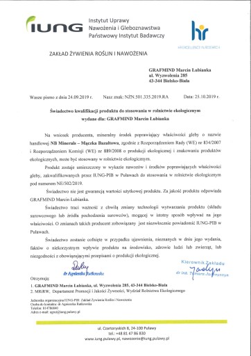 NB Minerals - Mączka Bazaltowa jest zakwalifikowana do stosowania w rolnictwie ekologicznym.