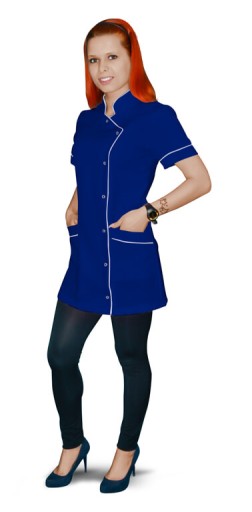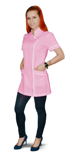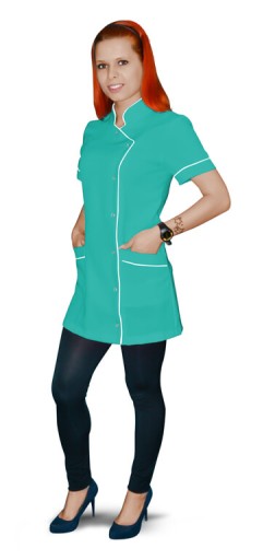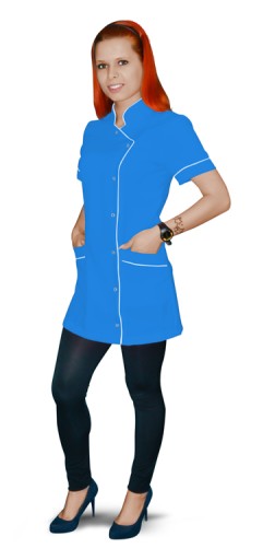 Rękaw fartucha jest krótki, dzięki czemu świetnie nadaje się na cieplejsze pory roku.
