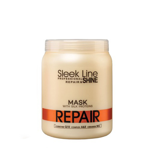 Maska Sleek Line Repair z jedwabiem. Maska jest przeznaczona do włosów i skóry zniszczonej po zabiegach fryzjerskich oraz zabiegach chemicznych. W skład produktu wchodzą proteiny jedwabiu, wyciąg z pestek słonecznika i innych roślin, idealnie regeneruje włosy cienkie, słabe i zniszczone. Filtr UV chroni włosy przed szkodliwym działaniem czynników zewnętrznych.