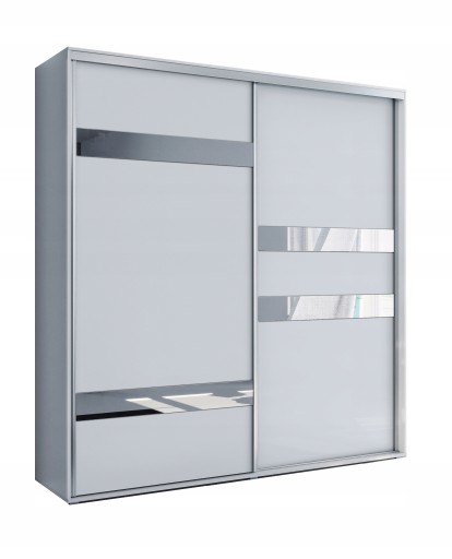 Nowoczesna i pojemna szafa przesuwna z półkami oraz drążkiem na wieszanie ubrań. Szafa dwudrzwiowa.