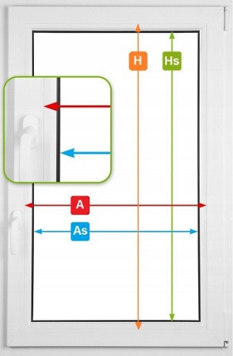 - wymiar Hs - pomiar wysokości szyby wraz z uszczelkami