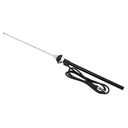 Antena samochodowa teleskopowa. Długość całkowita masztu po rozłożeniu: 100 cm. Średnica główki 2,5 cm, długość przewodu ok. 127 cm.