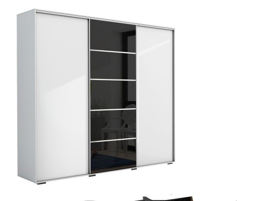 Nowoczesna i pojemna szafa przesuwna z półkami oraz drążkiem na wieszanie ubrań. Szafa trzydrzwiowa.