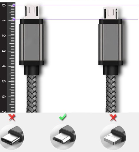 Standardowe kabelki z wtykiem typu micro USB nie pasują do tych telefonów, bo końcówki są za krótkie, mają około 7-8 mm długości