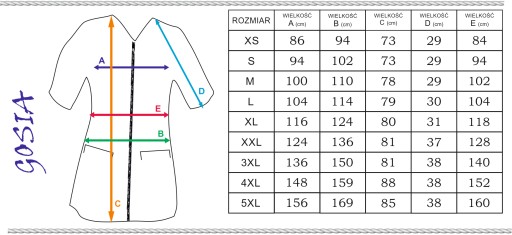 Długością dosięga do połowy uda, natomiast rękawy sięgają do łokcia.