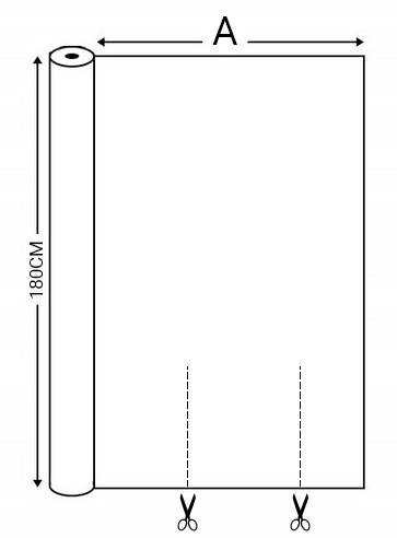 Belka tkaniny ma 180cm wysokości. Każda kupiona sztuka to 10cm szerokości (A)