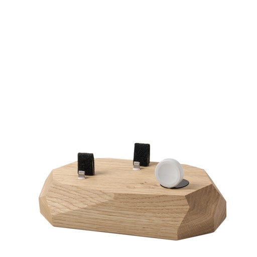 Ładowarka została wyknona z litego drewna dębowego. Wykończona naturalnymi olejami i woskami co zapewnia niesamowicie naturalny wygląd i przyjemną w dotyku powiechrznię.