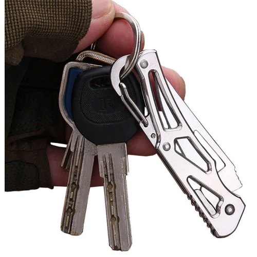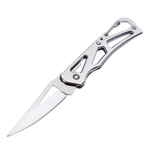 ZINTEGROWANY KARABIŃCZYK W RĘKOJEŚCI NOŻA, AŻUROWA KONSTRUKCJA DZIĘKI KTÓREJ NOŻYK JEST LEKKI