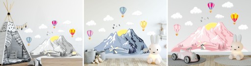 Naklejki są precyzyjnie wycinane po obrysie. Balony, ptaki, chmury są osobnymi elementami naklejki i możesz je dowolnie rozłożyć na ścianie lub innych, płaskich powierzchniach.