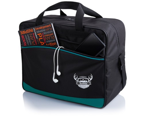 - Z przodu torba posiada dużą zapinaną na zamek kieszeń