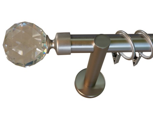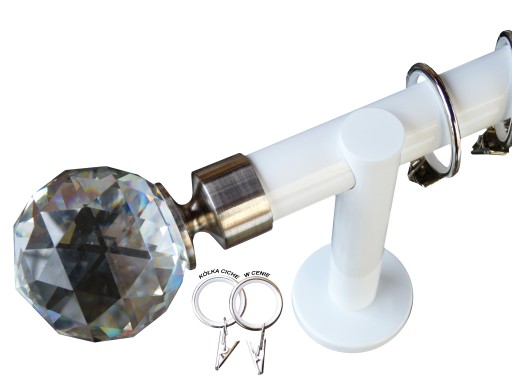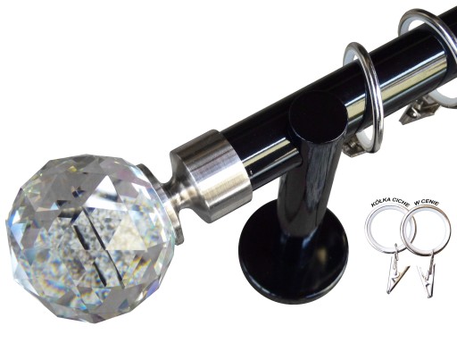 KARNISZ Metalowy NOWOCZESNY KRYSZTAŁ z Cichymi kółkami POJEDYNCZY 25MM