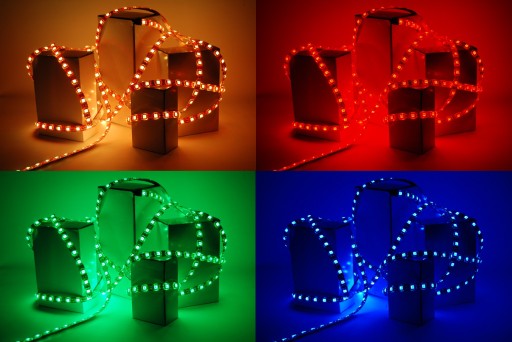 Jest to rodzaj listwy - taśmy LED na której są zamontowane diody typu RGB czyli świecące trzema podstawowymi kolorami: czerwonym, zielonym i niebieskim, za pomocą kontrolera możemy włączać każdy z tych kolorów oraz zmieniać je w dowolnym momencie. Najciekawsze jest mieszanie się kolorów podstawowych przez co otrzymujemy praktycznie nieskończenie wiele innych kolorów (ilość kolorów zależy od podłączonego kontrolera oraz od programów jakie on obsługuje przez co przy odpowiednim kontrolerze możemy uzyskać każdy kolor świecenia a różne programy kontrolera będą posiadały bardzo widowiskowe przejścia między kolorami oraz zmiany kolorów.
