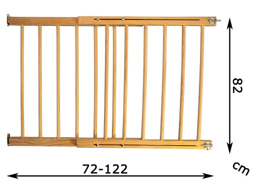 Drewniana bramka zabezpieczająca o wysokość 84 cm i regulowanej szerokości od 72 do 122 cm