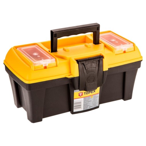 Skrzynka narzędziowa 12" TOPEX (nr ref.79R123) o wymiarach 29 x 14 x 15 cm. Lekka i praktyczna skrzynka narzędziowa wykonana z odpornego tworzywa sztucznego. Posiada 2 praktyczne organizery do przechowywania drobnych elementów i wygodny uchwyt do przenoszenia.