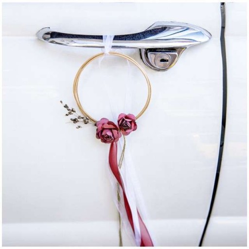 Piękny zestaw dekoracji samochodowych RATTANOWYCH w kolorze bordowym - Idealnie posłuży jako dekoracja samochodu, którym zostanie przewieziona Młoda Para. Nietuzinkowość dekoracji spowoduje, że nikt nie przejdzie obojętnie obok takiego samochodu, a wszystkie oczy będą skierowane na nowożeńców.