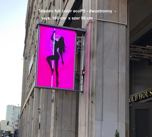 - Polski, wodoszczelny, zewnętrzny wyświetlacz led, telebim. Wyświetlacz przeznaczony jest do wyświetlania filmów i grafiki.