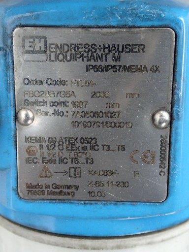 Sygnalizator poziomu cieczy E+H FTL51, 2000 mm
