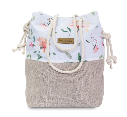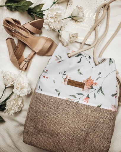 Torebka posiada grube bawełniane sznury z możliwością regulacji.