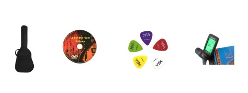 POKROWIEC, TUNER DO STROJENIA , PASEK, KOMPLET ZAPASOWYCH STRUN, KURS DVD ORAZ KOSTKI DO GRY