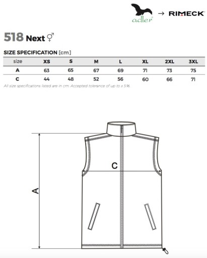 Kamizelka polarowa unisex RIMECK NEXT 518 gramatura 280g/m2