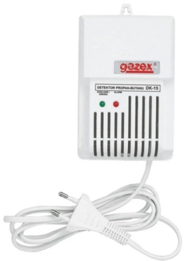 Domowy detektor gazu DK-15 to urządzenie firmy Gazex, którego zadaniem jest ciągłe monitorowanie nadmiernego stężenia gazu propan-butan w pomieszczeniach mieszkalnych zagrożonych emisją tego typu gazów.