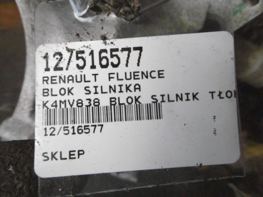 FLUENCE K4MV838 БЛОК ДВИГАТЕЛЯ ПОРШНИ + ВАЛ