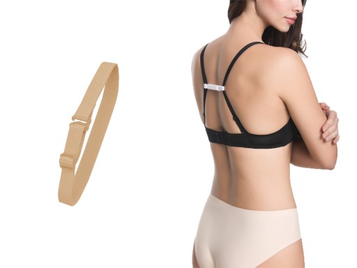 Ściągacz ramiączek, posiada regulacje długości. Niezwykle pomocny w sytuacjach, gdzie chcemy ukryć ramiączka pod strojem. Zawsze utrzyma w miejscu opadające ramiączka. Przy strojach z mocno wyciętymi rękawami dyskretnie zbliży ramiączka do siebie.