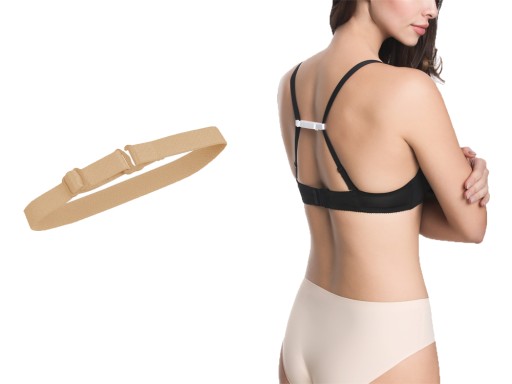 Ściągacz ramiączek, posiada regulacje długości. Niezwykle pomocny w sytuacjach, gdzie chcemy ukryć ramiączka pod strojem. Zawsze utrzyma w miejscu opadające ramiączka. Przy strojach z mocno wyciętymi rękawami dyskretnie zbliży ramiączka do siebie.