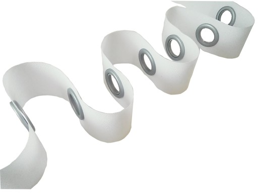 Taśma ma gotowe wycięte otwory, do których dołączone są przelotki (do wyboru dwa rozmiary oraz różne kolory).
