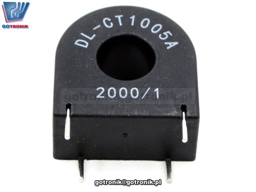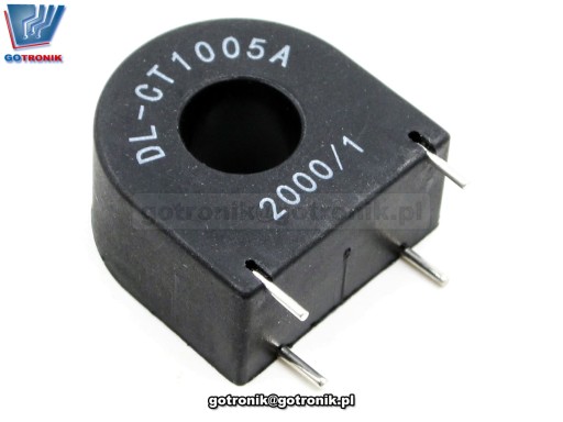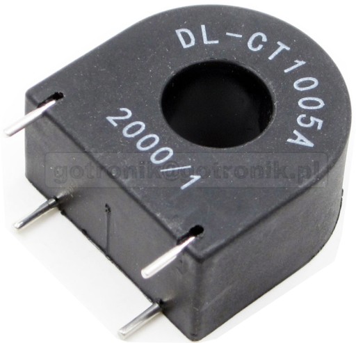 Moduł przekładnika prądowego AC o przekładni 1:2000, maksymalny prąd 10A. Moduł przekładnika prądu jest to transformator jednofazowy małej mocy pracujący w stanie zbliżonym do zwarcia, który służy do pomiaru większych prądów przez przyrządy pomiarowe o mniejszych zakresach pomiarowych. W tym przypadku prąd 10A odpowiada prądowi 5mA.