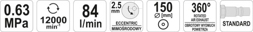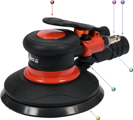 Profesjonalna szlifierka mimośrodowa zasilana strumieniem sprężonego powietrza pod ciśnieniem. Dzięki środkom ściernym nakładanym bezpośrednio na tarcze umożliwia szlifowanie i polerowanie różnego rodzaju materiałów. Stosowana w serwisach motoryzacyjnych i w przemyśle.