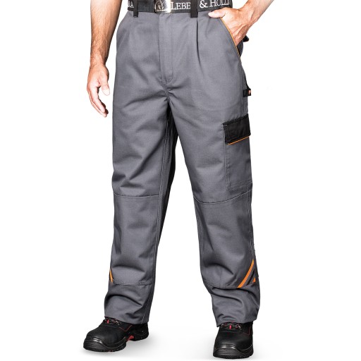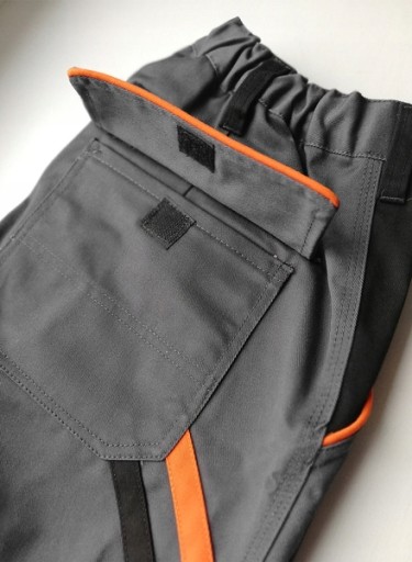 Praktyczne i wygodne spodnie robocze męskie, wyposażone są w m.in. kieszenie na nakolanniki, elementy odblaskowe, elastyczną gumkę w pasie, końcówkę do przypięcia kluczy oraz liczne kieszenie.