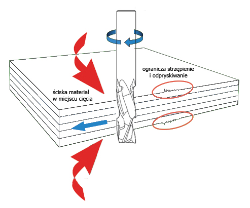 - Frez przystosowany do rozkroju płyt z dużymi prędkościami.