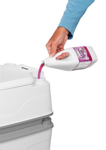 - Ponadto, w celu zapewniania optymalnego działania preparatu, należy uzupełnić rezerwuar przynajmniej 2 litrami wody w toaletach przenośnych i 3 litrami wody w toaletach kasetowych.