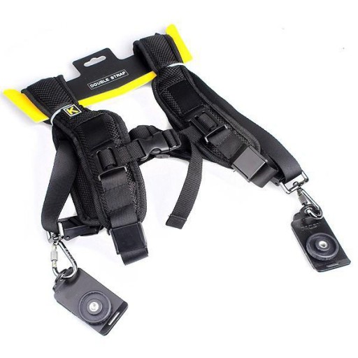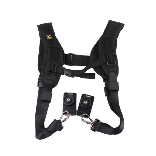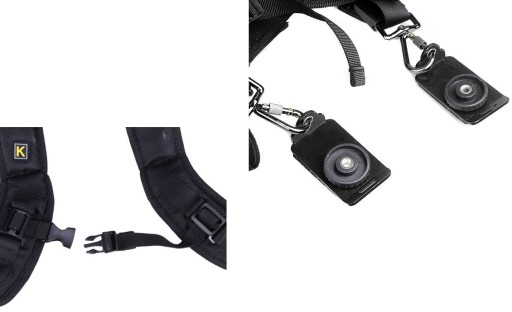 Podwójny pasek reporterski K2 zapewnia bezpieczeństwo i stabilność sprzętu nawet w najcięższych sytuacjach. K2 sprawia, że ??fotografia jest przyjemniejsza. Duże poduszki naramienne dają idealny komfort użytkowania cięzkich aparatów